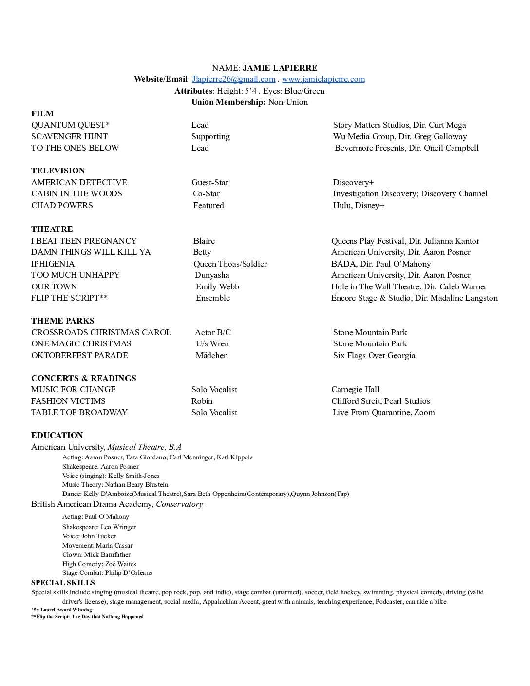 Jamie Lapierre is a versatile performer with a passion for bringing stories to life on screen and stage.